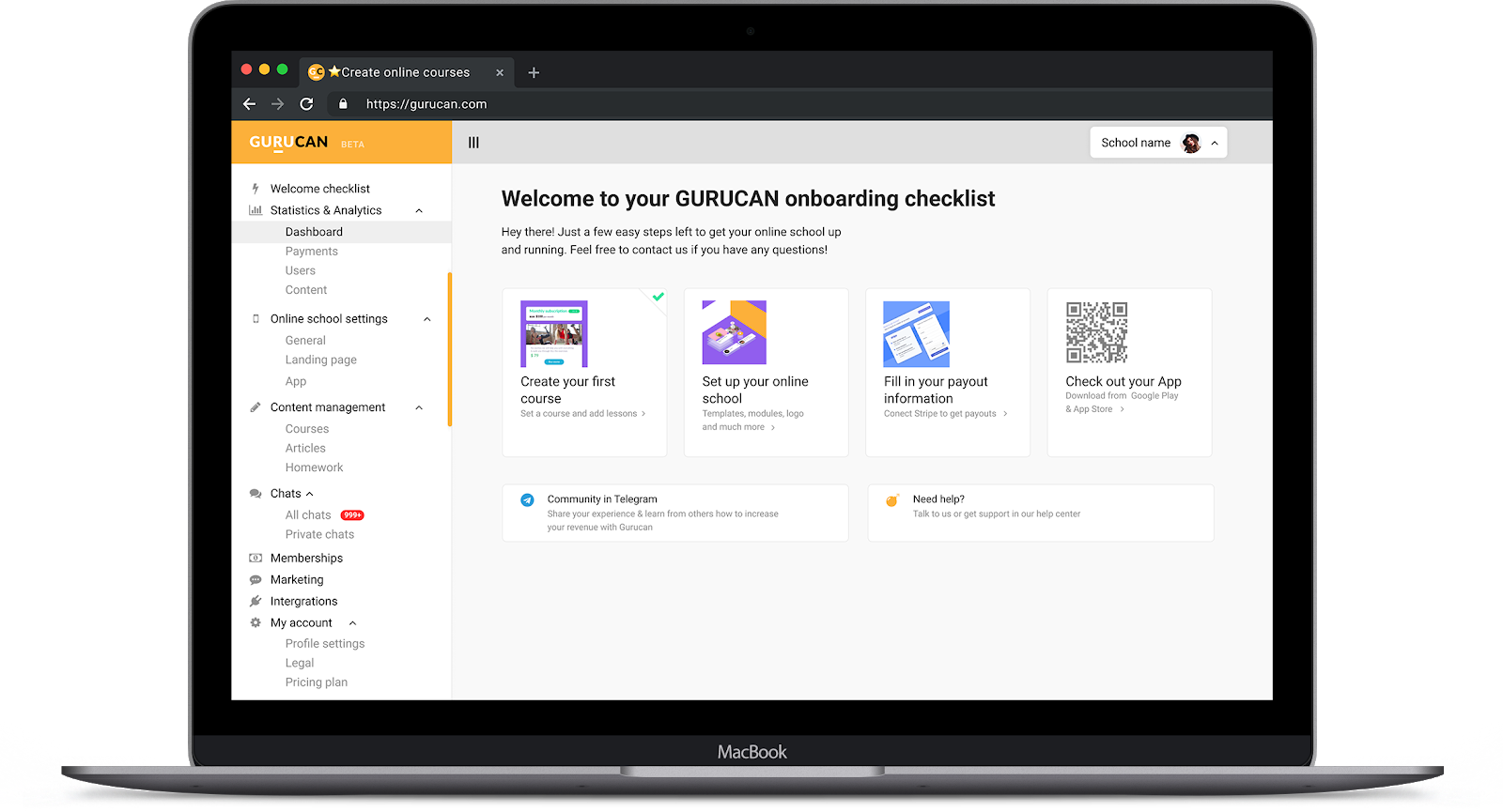 Также вы сможете задать вопросы со-основателю платформы и в итоге определитесь, подходит ли Gurucan для вашей онлайн-школы